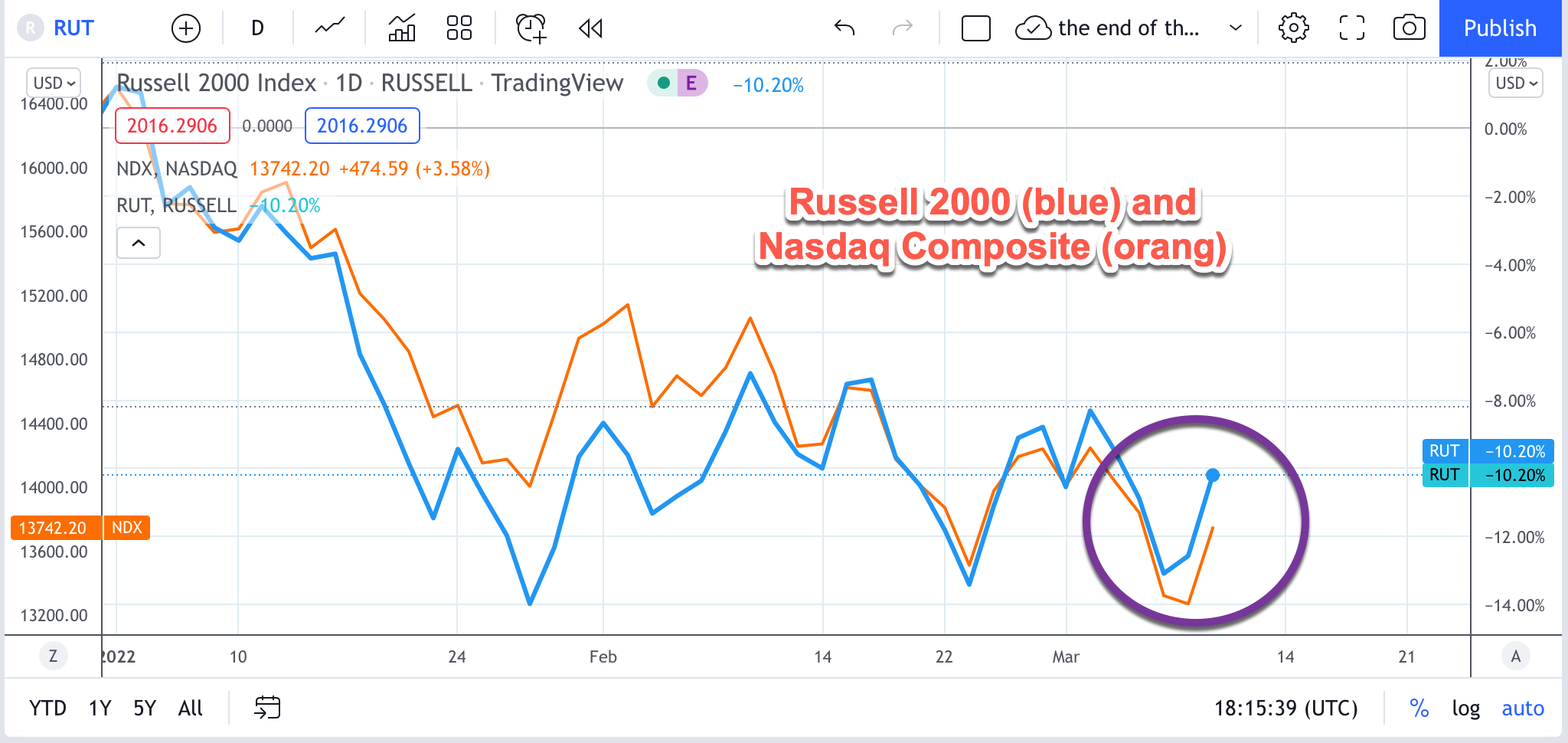The USD is king once again, partly on the back of higher US inflation, but it is also benefitting from safe haven flows as volatility spikes. A more interesting development is occurring in the US stock market indices on Thursday. The small cap Russel 2000 index has started to outperform the Nasdaq 100. Not even surging inflation could stop its 2.7% increase on Thursday, in contrast to the 2% decline in Nasdaq Composite index. The reason for this is that the mega-cap tech index is an international index and is thus more closely aligned with geopolitical events and in particular sanctions against Russia. In contrast, the domestically focussed Russell is less exposed to events in Ukraine. Also, it will benefit more from an oil deal between the US and Venezuela, so we could see more outperformance of the Russell when / if this deal is announced. Due to this, we think that this outperformance by the Russell 2000 compared to the Nasdaq may continue for the short term.